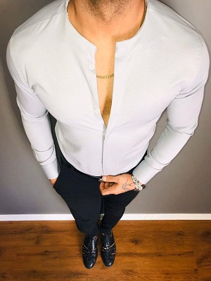 نماید، به این معنی که به صورت کلی یقه بر روی بخش پایینی پیراهن وجود